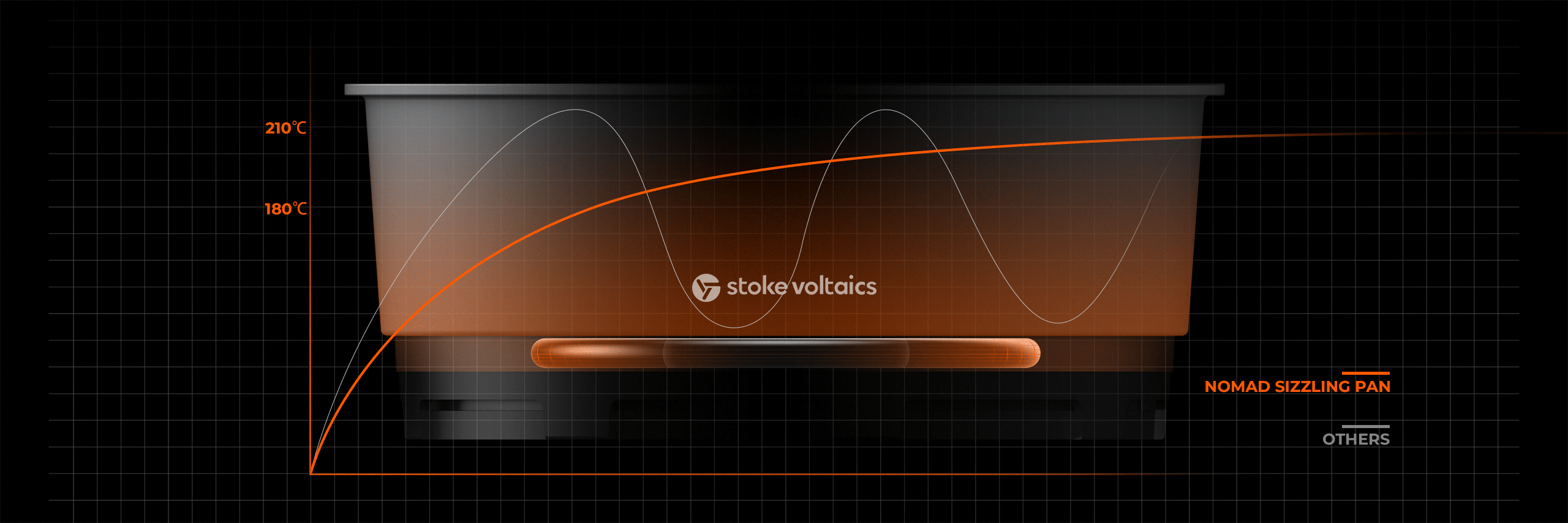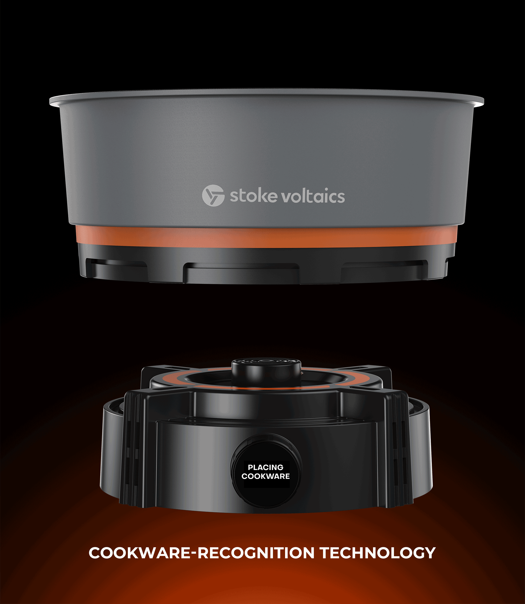 Revolutionary power control enabled by high-precision sensors and thyristors, facilitating intelligent cooking programs and cookware-recognition technology. Nomad Reactor automatically recognizes the sizzling-pan and bubbling-pot it is working on and matches them with the appropriate cooking program.