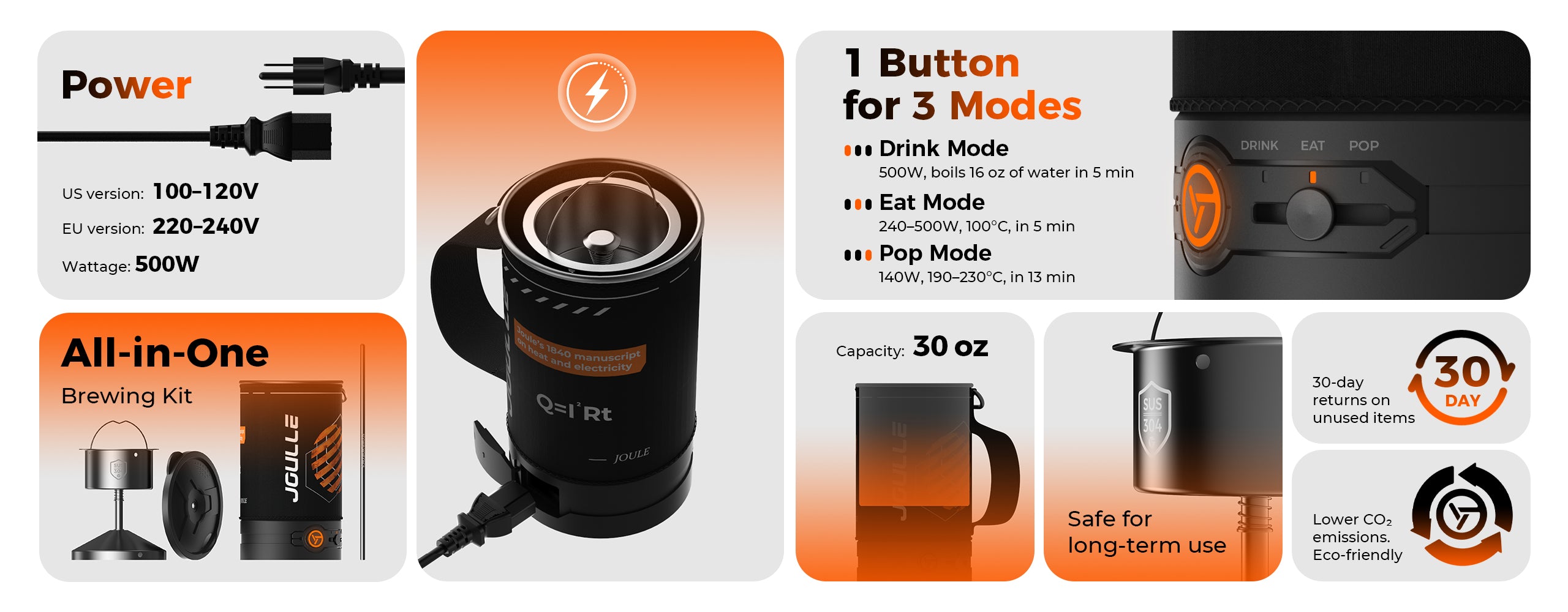 Reliable electric heat in a compact kettle pot, built for your personal small reset in the wild.