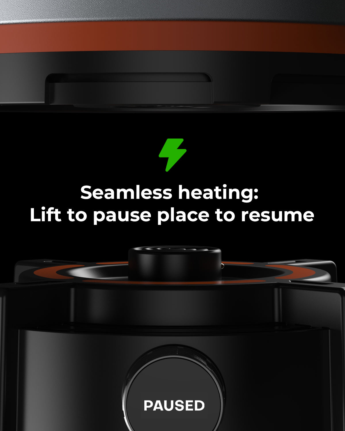 - Auto pause and resume when cookware is lifted. Auto shuts after 1 minute if pan or pot is not returned to the Cooking Reactor.
